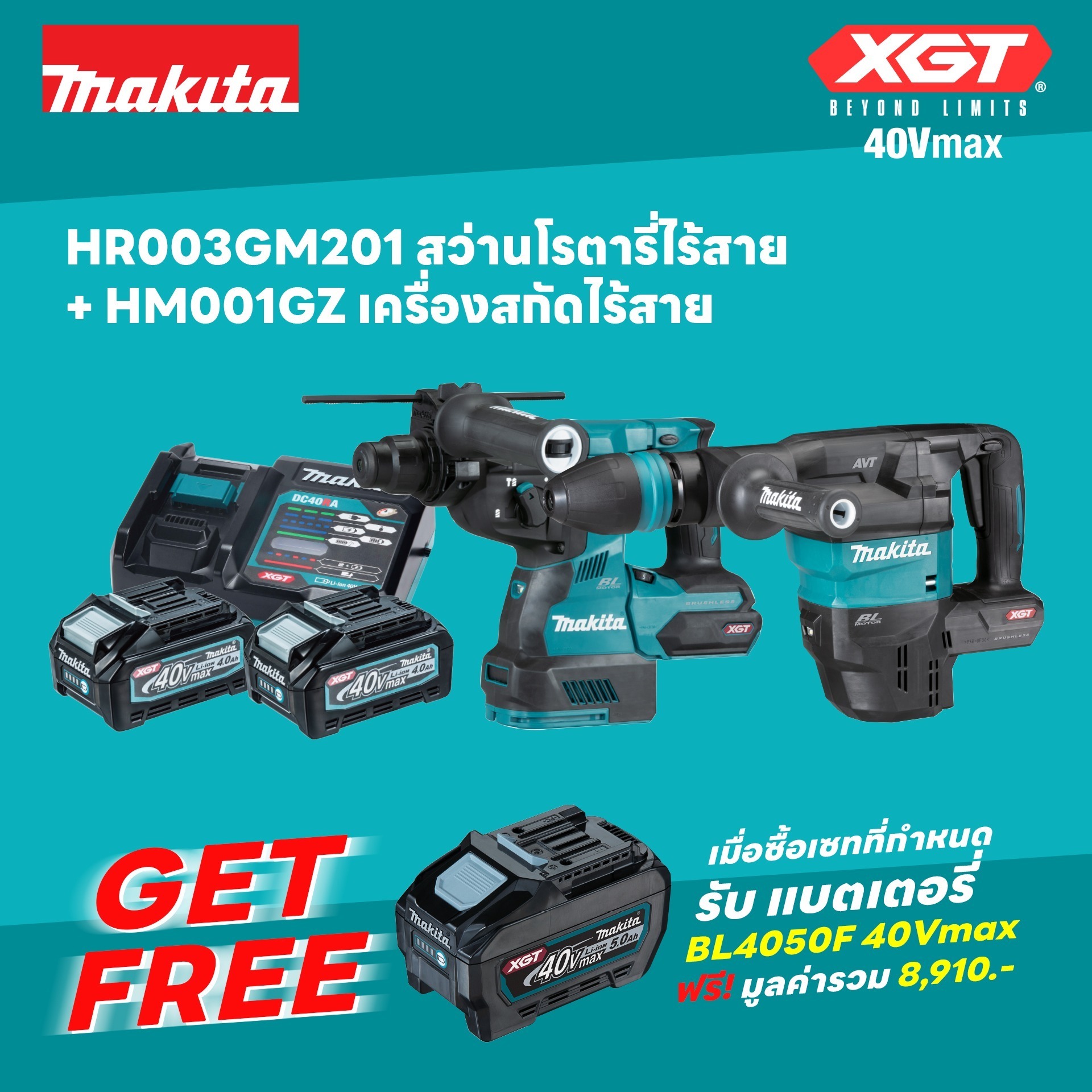 โปรโมชั่น XGT40V HR003GM201 สว่านโรตารี่ไร้สาย+HM001GZ เครื่องสกัดไร้สาย แถมแบตเตอรี่ BL4050F 1ก้อน